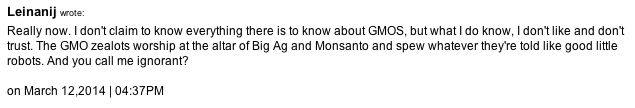 Get off of those whackosphere websites like Sustainable Pulse, GMO Free whatever wherever, Natural News, Green Med Info, Nature Cures, Holistic Health Woo, Altnet, and so on and you’ll see a different picture.
