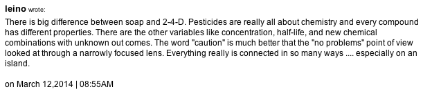 Just because you have been reading that all of these pesticides are poisonous and horrible from StopPoisoningParadise.com and during speeches from Hooser and Andrea Brower, you don’t have to be a scientist to do some research of what this all means. Knowing how to search and verify what is being said can make a huge difference in understanding fact from fiction.