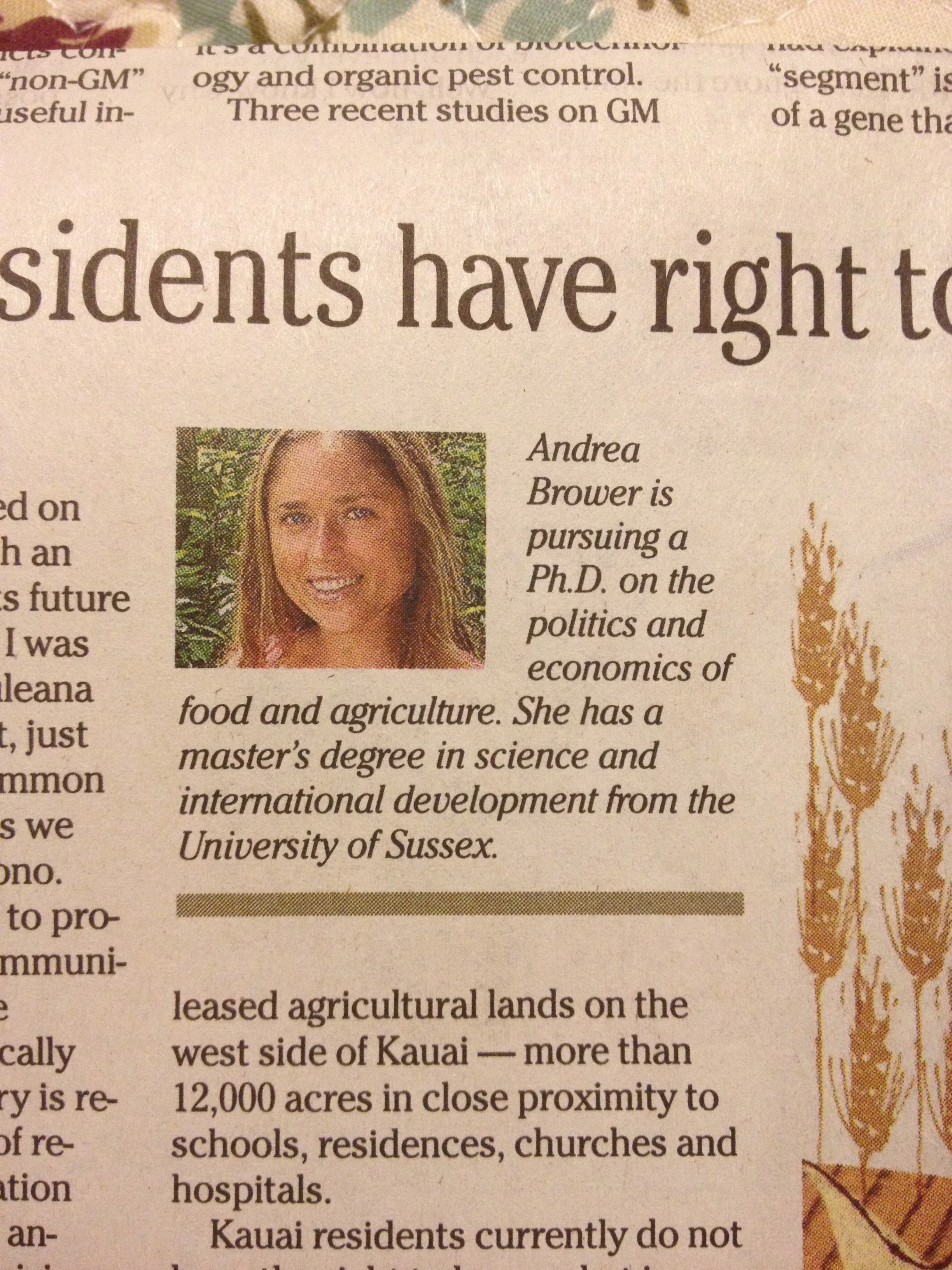 This starts to bring up some interesting questions. How does one go from a PhD in politics and economics of food and agriculture to now a PhD in sociology and that she’s no longer in Kauai as it mentions how she is formerly from Hawaii in a 3 month period? If you look up the sociology department at the University of Auckland, you can even see the curriculum and what other PhD students are studying and her name is not listed. Who are we really hearing from?